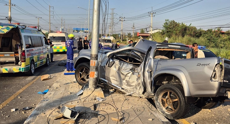 | หนุ่มสาวขับกระบะเสียหลัก ชนเสาไฟฟ้าเสียชีวิต 2 ราย |