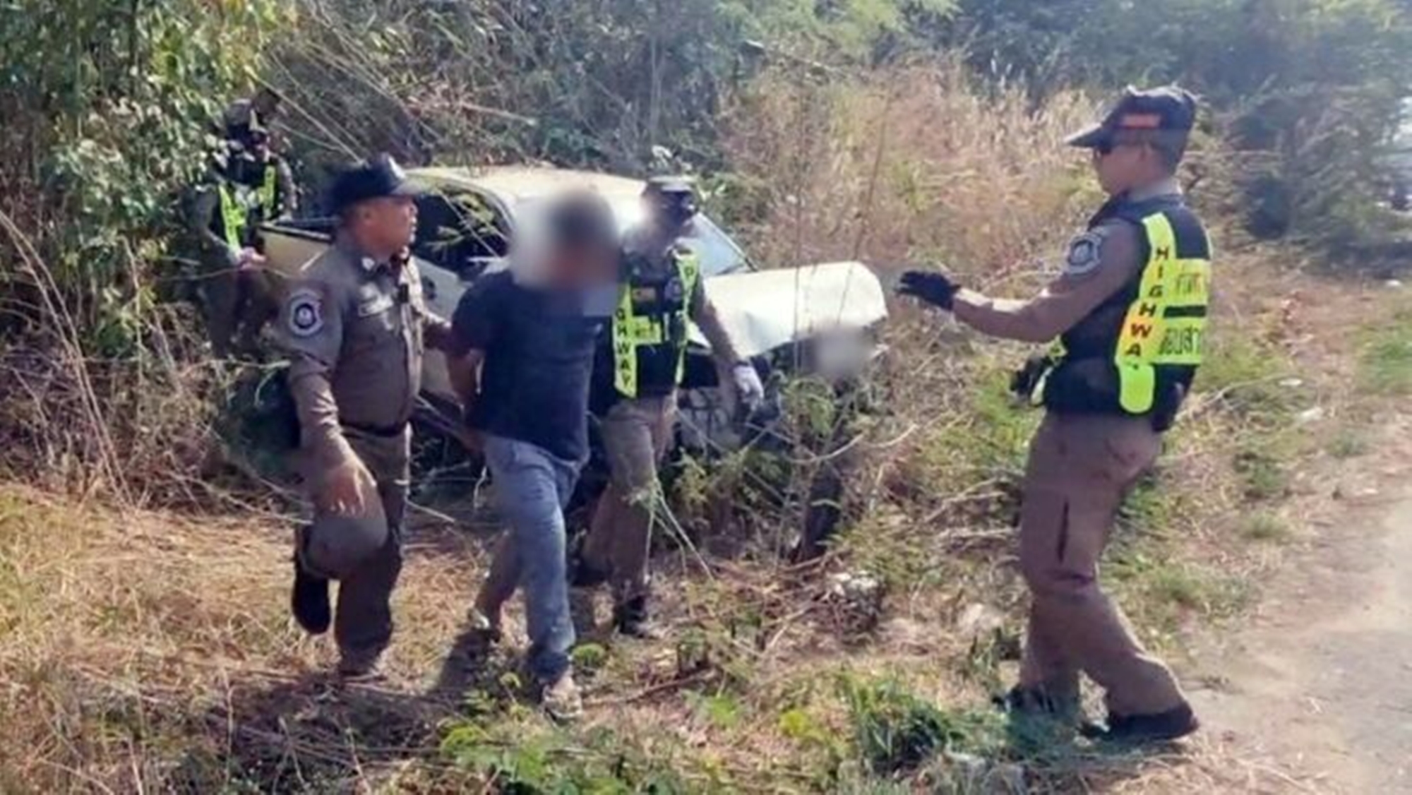 | จากการไล่ติดตามรถกระบะคันนี้ จากถนนเพชรเกษม อ.ปากท่อ ได้เลี้ยวลัดเลาะเข้ามาในถนนเลียบคลองชลประทานบริเวณ ต.ดอนแร่ อ.เมืองราชบุรี จากนั้นเกิดเสียหลักพุ่งตกลงข้างทาง ตำรวจทางหลวงที่ติดตามมาจึงปิดล้อมจับกุมนายชาญรงค์ อายุ 49 ปี คนขับรถได้รับบาดเจ็บเล็กน้อย ส่วนรถพังยับเยิน ตรวจค้นพบยาบ้า 7,997 เม็ด ซุกซ่อนอยู่บริเวณเบาะคนนั่งซ้าย เจ้าหน้าที่ทำแผลเบื้องต้นก่อนนำตัวพร้อมของกลางส่ง สภ.ปากท่อ ดำเนินคดีตามกฎหมายต่อไป |