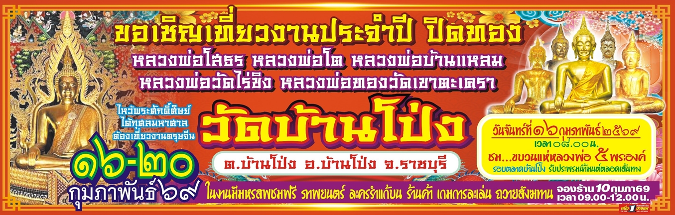 งานปิดทอง หลวงพ่อโสธร หลวงพ่อโต หลวงพ่อบ้านแหลม หลวงพ่อวัดไร่ขิง หลวงพ่อทองวัดเขาตะเครา ประจำปี 2569 |