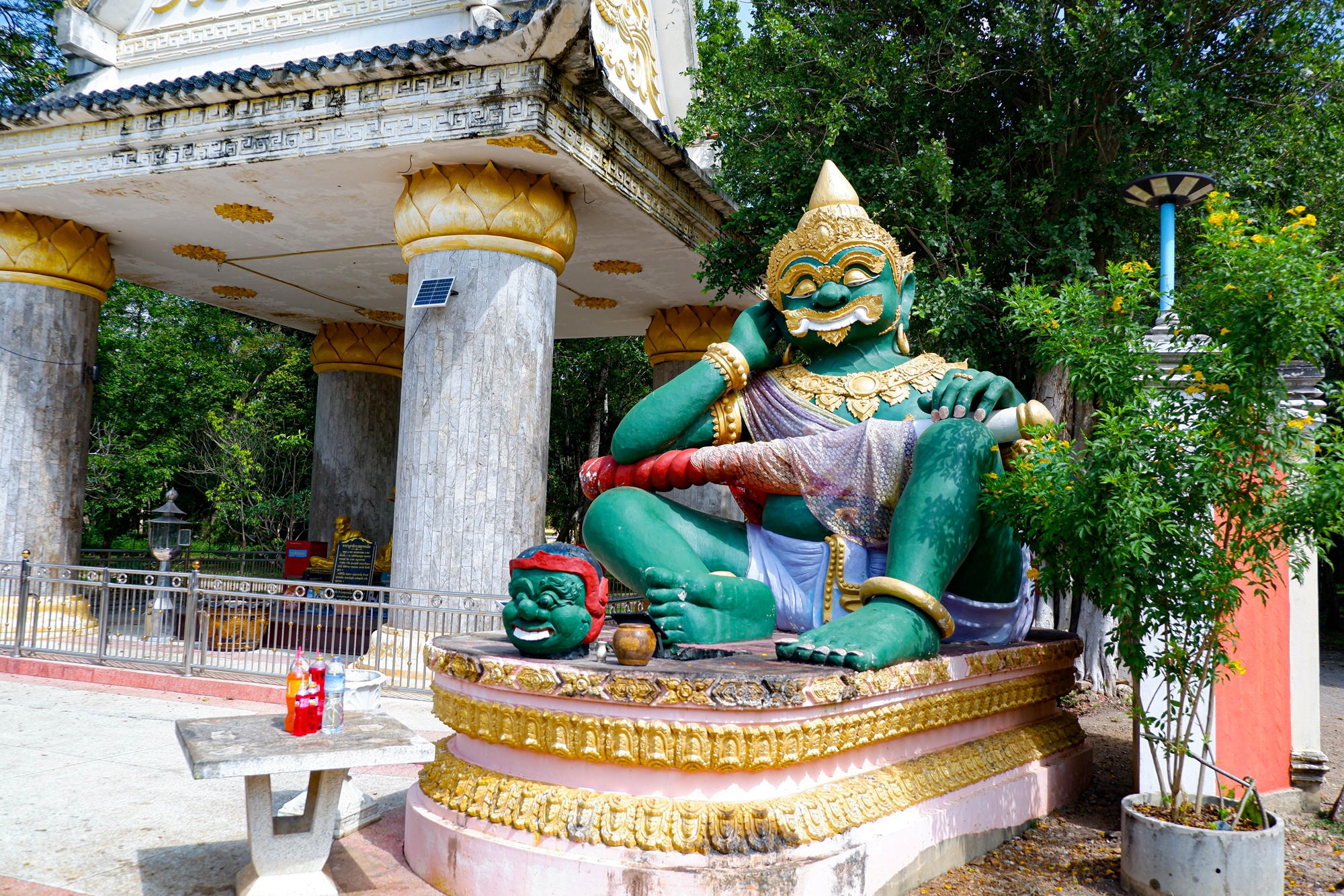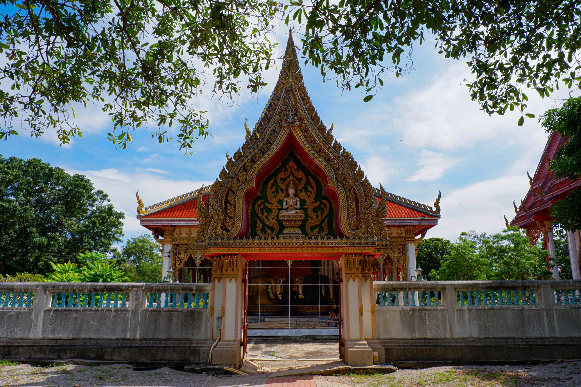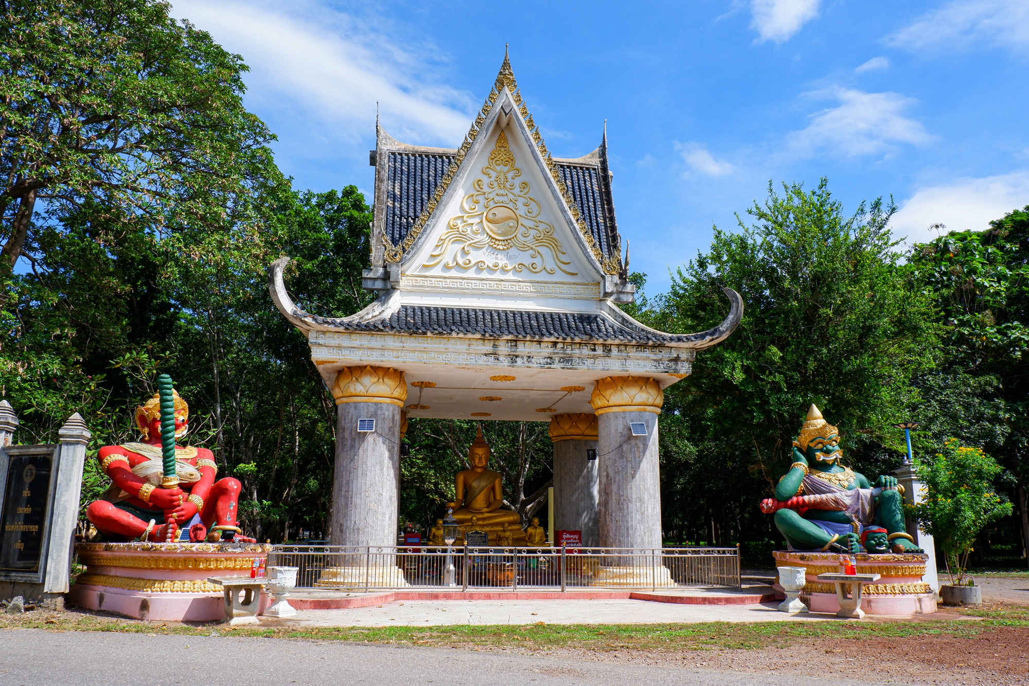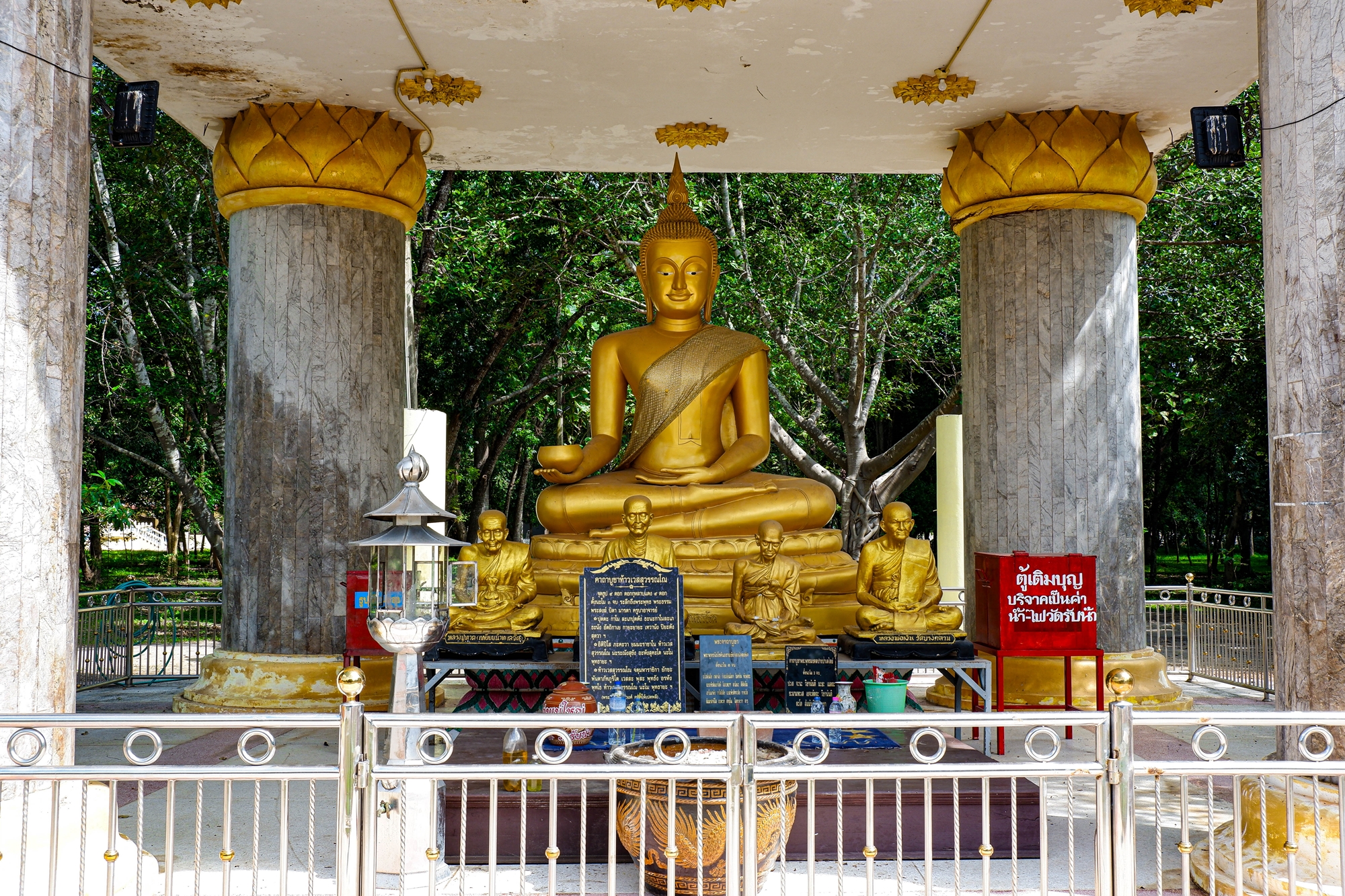 พระหน้าวัด ค่อนข้างเด่นและสะดุดตา พระองค์ใหญ่ประธาน ส่วนด้านข้างประกอบด้วย ท้าวเวสสุวรรณ 2 องค์สีแดงและสีเขียว อยู่ในท่านั่ง